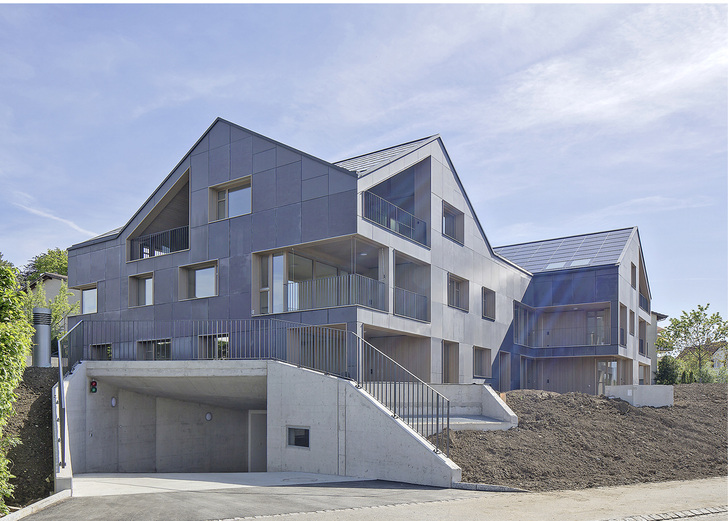 Im schweizerischen Brütten bei Zürich ist kürzlich ein besonderes Mehrfamilienhaus 1 mit neun Mietwohnungen 2 eingeweiht worden. Es ist das erste vollständig energieautarke Mehrfamilienhaus und kommt ohne Anschluss an das Stromnetz und andere Energieträger aus. Der gesamte Bedarf an elektrischer und thermischer Energie wird aus der Solarstrahlung bezogen. Die Mietkosten sind dabei nicht höher als anderswo: Um gut 10 % lagen die Baukosten über denen eines vergleichbaren Mehrfamilienhauses mit konventioneller Technik. Im Gegenzug müssen die Bewohner aber kein Geld für Strom und Wärme ausgeben. Realisiert wurde das Gebäude von der Umwelt Arena Spreitenbach. Bei der Hülle, der Technik und dem Energiekonzept des Gebäudes wurden die höchsten Standards realisiert und zusätzlich die energieeffizientesten Küchen- und Haushaltsgeräte eingesetzt. So wurde der heute durchschnittliche Verbrauch einer Wohnung auf 2200 kWh/a ohne Komforteinbußen halbiert. Durch PV-Module als vollwertige Fassaden- und Dachelemente entstanden zwar Mehrkosten, diese rechnen sich gegenüber einer konventionellen Gebäudehülle aber durch die Stromproduktion. Für die Fassaden wurden nicht reflektierende Module verwendet. Ein Lithium-Eisen-Phosphat-Batteriespeicher kann den Strombedarf für etwa zwei bis drei Tage vorhalten (153 kWh Nettokapazität). Reicht dieser Puffer nicht aus, springt eine Brennstoffzelle ein. Sie wird mit Wasserstoff betrieben, der zuvor mit Überschussstrom produziert (PEM-Elektrolyse mit 8 kW) und in zwei Tanks 3 mit einem Gesamtvolumen von 120 m 3 gespeichert wurde. Die nutzbare Reaktionswärme wird für die Trinkwassererwärmung und zum Heizen verwendet. Ein weiterer Teil des Solarstroms treibt eine Wärmepumpe an, die für die Trinkwassererwärmung, zum Heizen und zur Ladung der thermischen Kurz- und Langzeitspeicher (2 × 125 m 3 , drucklos) eingesetzt wird. Die Wasser/Wasser-Wärmepumpe Thermalia twin H19 4 von Hoval nutzt zwei Erdwärmesonden (jeweils 338 m), die während der Wasserstofferzeugung anfallende Wärme, die Abwärme der Wechselrichter und wenn es energetisch sinnvoll ist Außenluft als Wärmequelle; der Langzeitspeicher wird situationsbezogen mit einer maximalen Vorlauftemperatur von 67 °C geladen. Die Gebäudeheizung wurde mit einer Vorlauftemperatur von 28 °C ausgelegt.