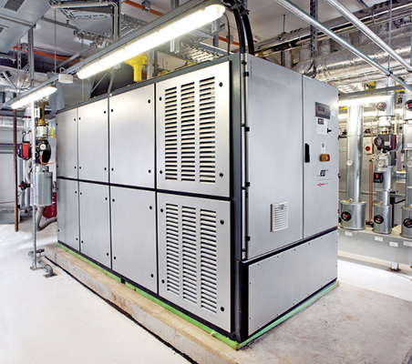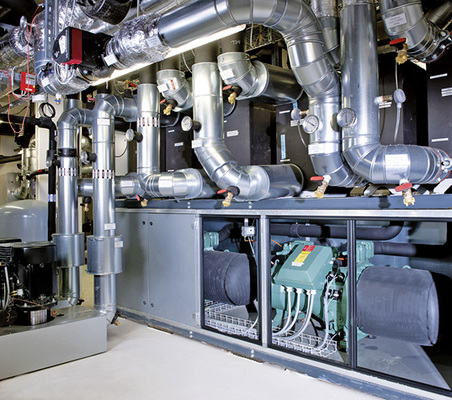 Die Marke Leica genießt bei Fotografen in aller Welt einen legendären Ruf. Sie steht für exzellente Qualität und eine besondere Kultur des Sehens. Anlässlich der Feiern zu „100 Jahre Leica Fotografie“ wurde am Stammsitz der Leica Camera AG in Wetzlar ein neues Produktions- und Verwaltungsgebäude Abb. 1 eingeweiht, das durch und durch auf Effizienz getrimmt ist. Während im Erdgeschoss auf den tausendstel Millimeter genau Kameras, Objektive und Sportoptik-Produkte (Ferngläser, Zielfernrohre und Entfernungsmesser) gefertigt werden, stellt im Keller ein effizientes Energiesystem die Wärme- und Kälteversorgung des architektonisch beeindruckenden Bauwerks sicher. Zwei Viessmann-Blockheizkraftwerke Vitobloc 200 mit 238 und 140 kW el decken den Grundbedarf an elektrischer Energie und stellen bei Bedarf im Netzersatzbetrieb die Stromversorgung für den Produktionsbetrieb sicher Abb. 2. Ihre Abwärme wird entweder zur Deckung des Wärmebedarfs des Gebäudes oder zum Antrieb einer Absorptionskältemaschine verwendet oder in einem Pufferspeicher bevorratet. Wärmebedarfsspitzen deckt ein Gas-Brennwertheizkessel Vitocrossal 200 mit bis zu 460 kW Heizleistung. Darüber hinaus wurde eine Viessmann-Sole/Wasser-Großwärmepumpe (510 kW) für die Gebäudebeheizung und Kühlung installiert Abb. 3. Ihre Energie für den Heizbetrieb holt sie sich aus einem Feld mit 80 Erdwärmesonden, die unterhalb des Parkplatzes 120 m tief in die Erde eingebracht worden sind. Bei erhöhtem Kühlbedarf ergänzt sie mit einer Kälteleistung von 482 kW die Absorptionskältemaschine. Das von der Wärmepumpe erzeugte Kaltwasser wird in einem offenen Sprinklertank für die Kühlung der Produktionsanlagen gespeichert. Das Energiekonzept wurde von der HPI Himmen Ingenieurgesellschaft, Köln, entwickelt. Unter der Leitung von Dipl.-Ing. Jürgen Drolshagen ist es gelungen, den Energieverbrauch gegenüber den Anforderungen der EnEV 2009 um mehr als 46 % zu unterschreiten. Das Gebäude wurde mit dem Greenbuilding-Zertifikat der EU und der DGNB-Präqualifikation in Gold ausgezeichnet.