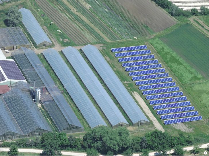 Im April 2015 ist in Bohlingen am Bodensee eine der größten solarthermischen Anlagen Deutschlands in Betrieb gegangen. Auf dem biodynamischen Gemüsehof von Thomas Keßler erzeugen nun 960 m 2 Solarkollektoren Wärme für neun Gewächshäuser 1 . Da diese jeden Tag beheizt werden müssen, kann die Solarwärme gut genutzt werden. Der Biobauer hatte schon länger mit dem Gedanken gespielt, Solarwärme zu integrieren. Den letzten Anstoß gaben die deutlich verbesserte Förderung für solare Prozesswärmeanlagen im Marktanreizprogramm (MAP) und das Zusammentreffen mit dem österreichischen Kollektorhersteller Martin Winkler. Er ist der Geschäftsführer der Winkler Solar GmbH, Hersteller von Hochleistungskollektoren für alle Einsatzbereiche und Mit-Initiator der Kampagne Solarwärme für alle. Winkler Solar lieferte die 48 Kollektoren für die auf dem Boden aufgeständerte Anlage zu.