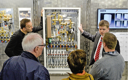 Im Forum „Handwerk“ (Halle 4, Stand 4.100) geht es täglich zwischen 10.00 und 16.00 Uhr um Trends aus dem SHK-Bereich. Von Brandschutz über Wohnraumlüftung und Wasseraufbereitung bis hin zum vernetzten Badezimmer informieren Experten in 20 -bis 30-minütigen Vorträgen. Vormittags stehen Themen rund um den Wärmemarkt im Fokus. Dabei geht es um Technik, Politik und Perspektiven im Wärmemarkt, Chancen für das Handwerk durch die digitale Heizung, hybride Wärmepumpensysteme, Brennstoffzellenheizung und das Heizen mit grünem Strom. In unmittelbarer Nähe zum Forum „Handwerk“ befindet sich die Themenfläche „Innovative Heizungstechnik“, die der Bundesverband der deutschen Heizungsindustrie (BDH) gestaltet. Neben Informationen zu Energieeffizienz und erneuerbare Energien im Wärmemarkt präsentiert der BDH gemeinsam mit der EEBUS-Initiative den EEBUS-Demonstrator. Der Aufbau zeigt mit besonderem Fokus auf die Wärmepumpe, wie das Zusammenspiel der Komponenten im Haus der Zukunft funktioniert.