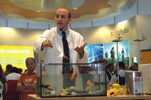 Das Interesse an Solartechnik steigt ungebrochen. Zur Intersolar 2009 vom 27. bis 29. Mai werden 1300 Aussteller erwartet, 2008 kamen 1053. Die Ausstellungsfläche legt 2009 auf 100000 m 2 zu, 2008 waren 76000 m 2 (brutto) belegt. Und 2009 rechnen die Veranstalter mit 60000 Besuchern, 2008 kamen rund 52000, was nach dem Umzug von Freiburg nach München einem Plus von über 60 % entsprach. Geblieben ist die klare Fokussierung auf Photovoltaik, Solarthermie (inkl. Solarer Kühlung) und Solares Bauen. Wobei durch die immer tiefere Integration der Sonnenkollektoren in ausgefeilte Energiekonzepte auch „Solar-Wärmepumpen“, „Solar-Brennwertheizkessel“ und Kombinationen mit Biomasse-Heizkesseln zu sehen sein werden. Die Intersolar 2009 wird wieder von einem abwechslungsreichen Kongressprogramm begleitet. Eine Vielzahl Foren, Workshops und Konferenzen bieten umfassende und vertiefende Informationen. Bereits im Vorfeld der Intersolar finden am 25. und 26. Mai in München die 4. Europäische Solarthermie-Konferenz und das 5. PV Industry Forum statt. Über aktuelle Trends und neue Produkte informiert zudem die Neuheitenbörse in Halle B3, Stand-Nr. 150. Hier präsentieren während der Messe Aussteller in fünfzehnminütigen Vorträgen ihre Neuheiten.