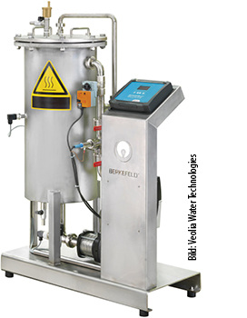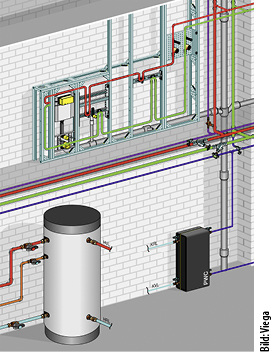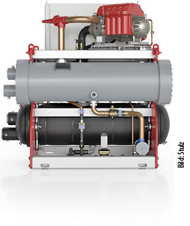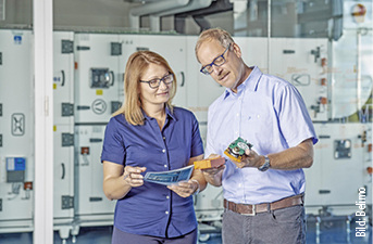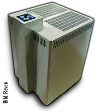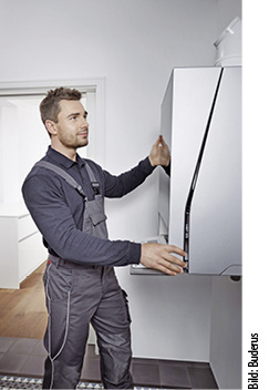 Remeha, 12.1 B70, wird ab Sommer 2019 eine PEMFC-Brennstoffzelle (Polymerelektrolytmembran) in den deutschen Markt einführen. Das System besteht neben dem Brennstoffzellen-Modul (750 W el , 1100 W th , elektrischer Wirkungsgrad > 35 %) aus einem 300-l-Pufferspeicher. Im Puffervorbau sind eine Hydraulikeinheit und ein Gas-Brennwertgerät (4,8 bis 20 kW) für die Spitzenlast integriert. Die Trinkwassererwärmung erfolgt über ein Frischwassermodul. www.remeha.de