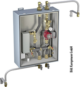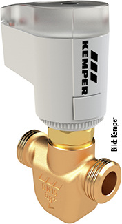 Kieback&Peter, 10.3 C55: Der Drehstellantrieb DS5 zusammen mit dem 6-Wege-Kugelhahn CBV ersetzt u. a. bei Heiz- und Kühldecken bis zu vier herkömmliche Regelarmaturen. Der Durchflusswert für den Hydraulischen Abgleichs lässt sich durch den Einsatz von Blenden einstellen. www.kieback-peter.de