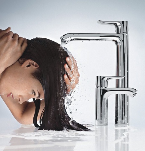 Hansgrohe, 2.0 A02: Die Armaturenlinie Metris bietet Lösungen für unterschiedliche Gewohnheiten und Voraussetzungen am Waschplatz: Ob flache Keramik, hohe Waschschüssel oder Platz sparendes Handwaschbecken – fünf Mischer mit den ComfortZones 100 bis 260 lassen sich je nach Nutzungsgewohnheit kombinieren.