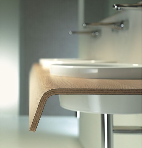 Duravit, 3.1 B99/C80: Die neue Badserie „Onto“ von Matteo Thun löst das Thema Waschplatz auf eine neue Art und Weise. Die Keramik wird nicht mehr traditionell auf die Konsole gesetzt, sondern die Waschbecken werden selbst zum Träger für die Konsole, die vorne in einem sanften Schwung nach unten geht und das Becken mit einem Bogen verkleidet.
