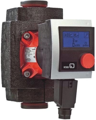 KSB, 9.1 E30: Die wartungsfreie, hocheffiziente Nassläuferpumpe Riotronic P mit stufenloser Differenzdruckregelung und automatischer Entlüftungsfunktion ist mit einem Medientemperaturbereich von +2 bis +110 °C als Heizungspumpe für Ein- bis Sechsfamilienhäusern sowie Klimaanwendungen und industrielle Umwälzsysteme konzipiert.