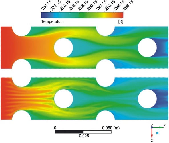 Howatherm, 11.0 C48: Ein „Quantensprung in der Wärmeübertragung“ verspricht eine neuartige Lamellengeometrie für Hochleistungs-Kreislaufverbundsysteme. Bei gleichem Druckabfall bietet sie gegenüber der bisherigen Lamelle einen um 27 % verbesserten Wärmeübergangskoeffizienten, bei gleicher Leistung sinkt das Bauvolumen um 21 %.