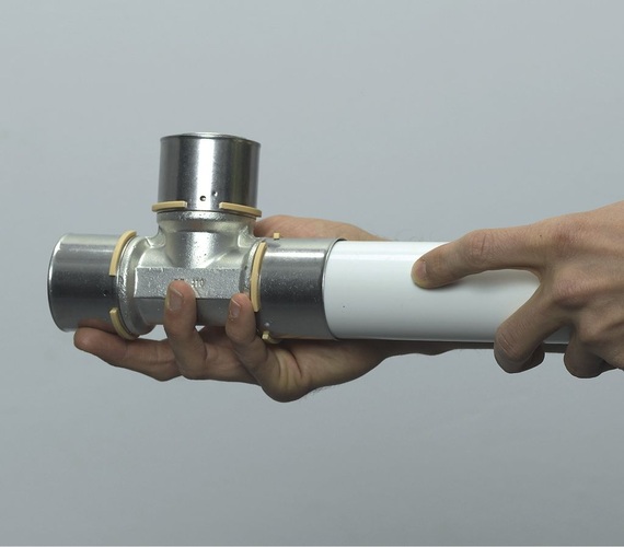 Uponor, 6.0 C/D30, erweitert sein Farbleitsystem für Metallpressfittings und Pressbacken auf die Nennweiten 40 und 50 mm. Zudem lassen sich die neuen Metallpressfittings durch eine verbesserte Geometrie der Stützhülse leichter auf das Verbundrohr schieben.