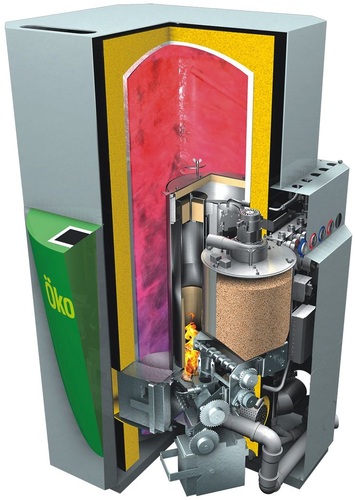 ÖkoFEN, 9.1 G90/97: Modular aufgebaut und individuell konfigurierbar vereint Pellematic Smart auf 1,5 m 2 Grundfläche Pellet-Brennwerttechnik, Solarthermie und die gesamte Heizungshydraulik. Das System für Niedrigenergie- und Passivhäuser wird mit 4, 6 und 8 kW Heizleistung angeboten.