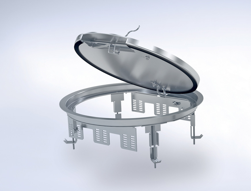 PohlCon, 12.0-B80: Die Edelstahleinbaueinheiten von PUK sind u. a. als blinde Einheiten (Revisionsöffnung) sowie als Kabelauslass- und Tubuseinheiten mit einer Bodenbelagstiefe im Deckel von 12 und 22 mm verfügbar. Die nivellierbaren Edelstahleinheiten eignen sich so als elegante Lösung für Foyers, Konferenzräume und Ausstellungsflächen.
