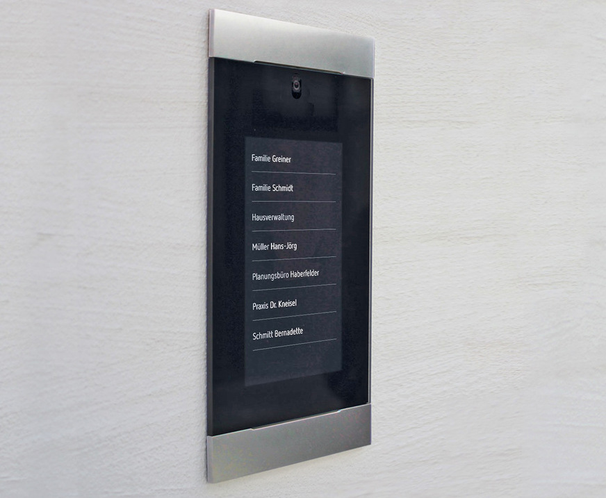 Callom, 11.1-B06: Die Door Unit Elemental bietet alle Grundfunktionen einer Video-Türsprechstelle. Geklingelt wird durch Touch auf die digitalen Klingelschilder, ihre Beschriftung wird einfach als Text eingegeben. Per VoIP erhalten die Innensprechstellen eine Sprachübertragung und ein hochauflösendes Live-Video. Die Türöffnung erfolgt an SIP/VoIP-Telefonen über eine Code-Eingabe oder am Smart-Home-Panel Gira G1.