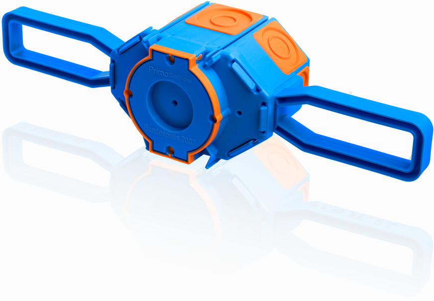 Primo, 12.0-F05: Bisher gab es die Membranbetondose für Elektroinstallationen im Betonbau mit und ohne Flügel. Für den universellen Einsatz gibt es künftig nur noch eine Grundvariante ohne Flügel, diese können aber als Zubehör an der Dose befestigt werden. Und 2,5 cm zusätzlichen Klemmraum bietet ein Aufsteckrahmen, mit dem die Membrandose beliebig erweiterbar ist. Durch eine Aufnahme für Deckenhaken ist sie auch als Deckendose verwendbar.