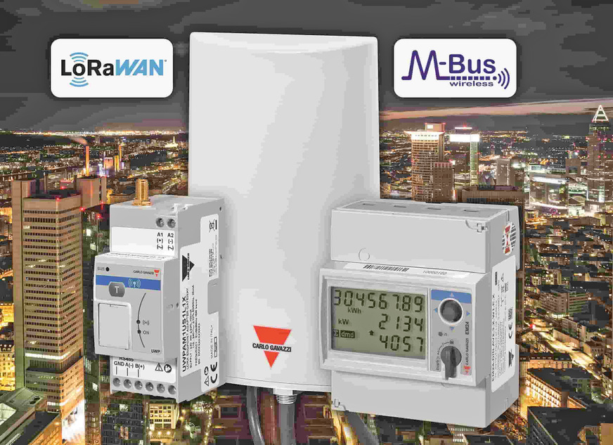 Carlo Gavazzi, 11.0-C86: Für die Übertragung von Daten aus verteilten Messeinrichtungen über größere Entfernungen eignet sich die LoRa-basierte Lösung mit dem Gateway UWP-A und dem Master-Konzentrator UWP-M. Das Gateway erfasst die Daten von Energiemessgeräten via Modbus RTU RS485 und überträgt sie entweder an LoRaWAN-Systeme von Drittanbietern oder über ein privates Netzwerk an den Master-Konzentrator UWP-M. Über eine Überwachungs- und Steuerungseinheit werden die gesammelten Daten dann online verfügbar.