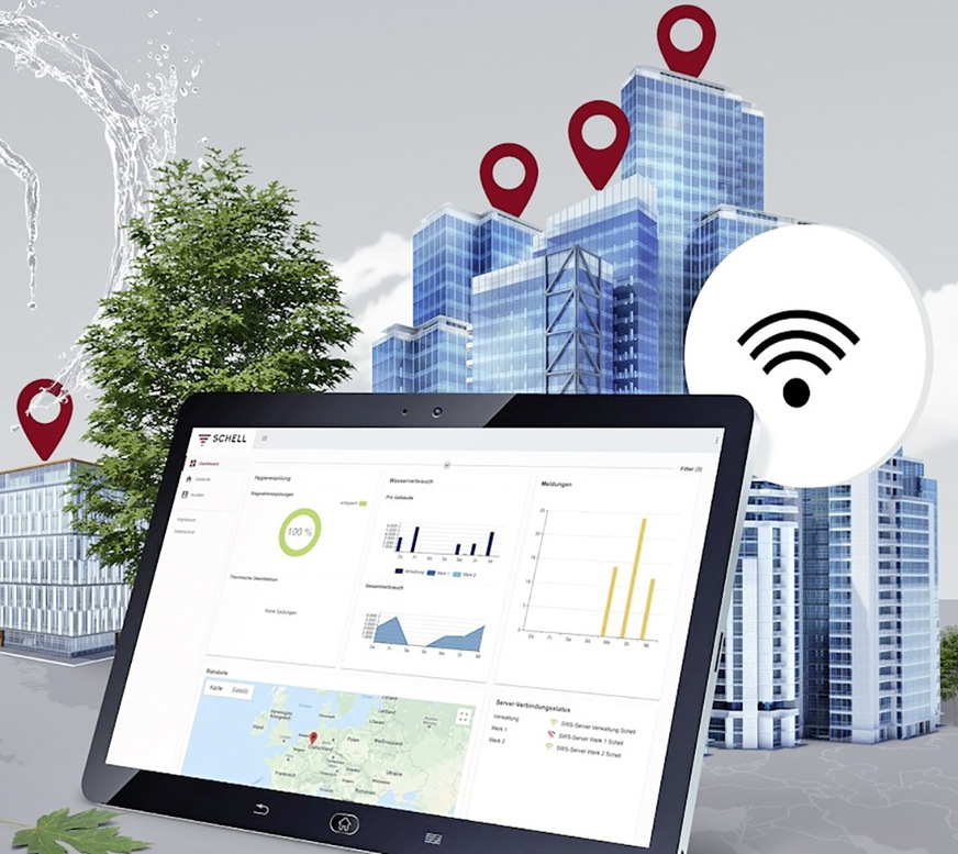 Schell, 7D14: Der Cloud-Service Smart.SWS ist eine Benutzeroberfläche zur grafischen Auswertung der Betriebsdaten des Wassermanagement-Systems SWS. Dazu kann – detailliert für jeden Wassermanagement-Server, aber auch gebäude- und liegenschaftsübergreifend – der Status der Betriebsparameter und des bestimmungsgemäßen Betriebs per Fernzugriff von jedem Endgerät mit Internetanbindung abrufen und bei optimiert werden.