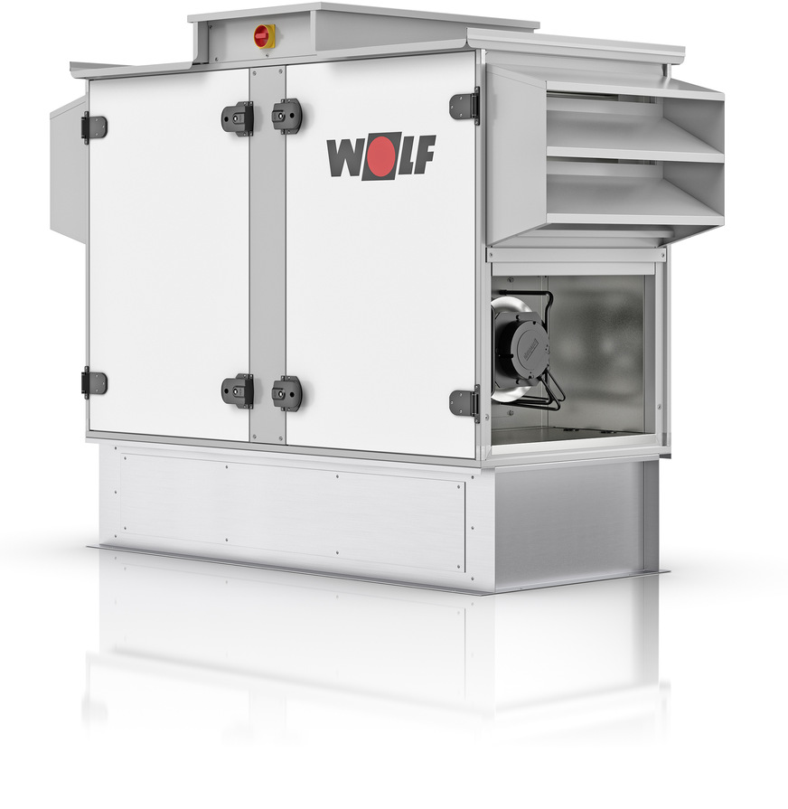 Wolf, 3A14: Das Comfort-Kompakt-Lüftungsgerät CK evo ist in den Leistungsgrößen 1400, 2400 und 3300 m3/h verfügbar und hat beste Gehäusekennwerte nach DIN EN 1886: Thermische Isolierung T2, Wärmebrückenfaktor TB2, mechanische Stabilität D1 sowie Leckageklasse L1. Es ist als Innengerät mit horizontalem oder vertikalem Kanalanschluss sowie als Außengerät verfügbar.