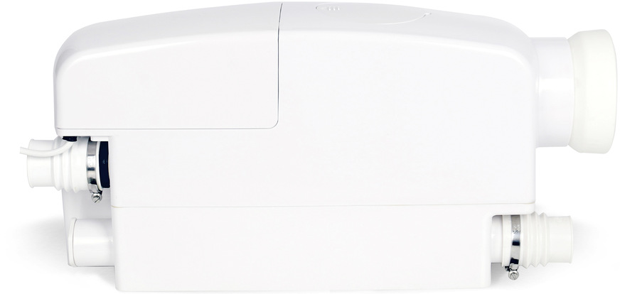 Homa, 5E11: Die Kleinhebeanlage San.iQ cut V ist mit einer Breite von 170 mm für die Anordnung in der Vorwand ausgelegt; durch den optionalen Anschluss einer Entlüftungsleitung wird hier der Eintrag von Feuchtigkeit verhindert. Ein separater Trockenbereich, über den sich die Motor- und Steuerungseinheit entnehmen lässt, vereinfacht die Wartung.