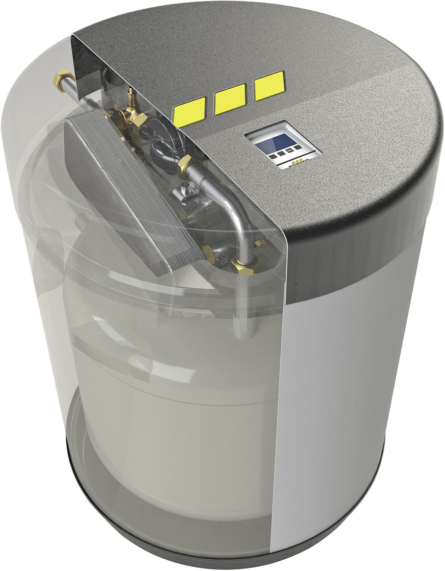 varmeco, 1C23: Die eXergiemaschine optimiert unabhängig von der jeweiligen Wärmelast die Vor- und Rücklauftemperatur in Heiz- und Warmwasserzentralen mit Pufferspeichern. Das bietet Vorteile für Fern-, Nahwärme-, Brennwert-, Abwärmenutzungs- und Solarthermieanlagen. Die Wasser/Wasser-Wärmepumpe (R134a) ist mit 5, 10, 20 und 40 kW maximaler Wärmeleistung erhältlich, die maximale Vorlauftemperatur beträgt 80 °C.