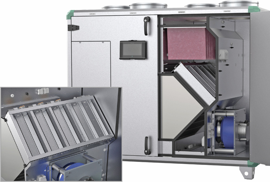Systemair, 2C24: Die Lüftungsgeräte Topvex und Geniox sind jetzt mit sektionaler Enteisung verfügbar. Sie verhindert das Vereisen des Wärmeübertragers bei Temperaturen unter dem Gefrierpunkt und sichert einen ganzjährig effizienten Betrieb. Eine weitere Neuheit für Topvex-Kompaktlüftungsgeräte ist eine anschlussfertige Pumpengruppe für die Einbindung ins Heizsystem.