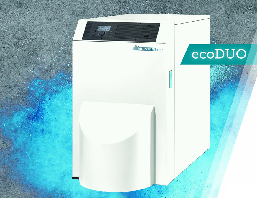 MHG Heiztechnik, 3A02: ecoDUO ist ein 2-in-1-Brennwertheizkessel für die flexible Umstellung des Heizbetriebs von Öl auf Gas. Ausgestattet ist der ecoDUO zunächst mit einem einstufigen oder modulierenden Raketenbrenner für den Öl-Betrieb. Soll später auf Gas-Betrieb gewechselt werden, kann direkt ein MHG-Gasbrenner am Brennwertheizkessel installiert werden.