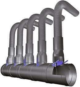 Zum Luftverteilsystem PluggFlex R mit 75-mm-Lüftungsrohren aus Polypropylen gehört ein zentraler Verteiler aus Stahlblech für bis zu sechs Auslässe. Die Regelung der Luftvolumenströme erfolgt stufenlos über die aufsteckbaren Rundrohrventile RD75. http://www.pluggit.com