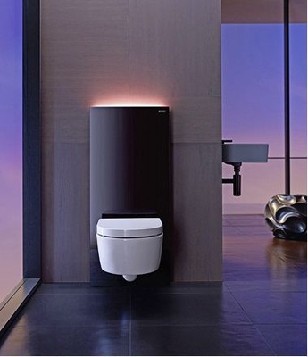 Das WC-Sanitärmodul Monolith Plus bietet neue Funktionen: Unter der edlen Hülle aus Glas und gebürstetem Aluminium verbirgt es neben dem anschlussfertigen Spülkasten eine Soft-Touch-Auslösung, eine Geruchsabsaugung mit Benutzererkennung und manueller Schaltung sowie eine LED-Lichtleiste mit sieben wählbaren Farben. http://www.geberit.de