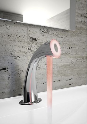 Die Armatur Twist mit futuristischem Design, robustem Gehäuse und wassersparendem Komfort-Strahl wurde für den anspruchsvollen halböffentlichen Bereich konzipiert. Den Wasserstrahl löst eine Bewegung unter dem IR-Sensor oder das Berühren der Touch-Taste aus. Die Temperatur ist über die Taste in drei Stufen veränderbar – angezeigt wird sie durch einen Leuchtring um das Touchfeld und die Beleuchtung des Wasserstrahls. http://www.hightech.ag