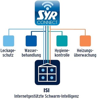SYR Connect verbindet Armaturen, Steuerungselektronik und das Internet. Über eine dazugehörige App können die miteinander kommunizierenden Connect-Module aus den Bereichen Leckageschutz, Wasserbehandlung, Hygienekontrolle und Heizungsüberwachung kontrolliert und gesteuert werden. http://www.syr.de