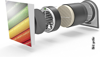 Blauberg Ventilatoren, 2-A14: BlauFast ist ein Luftverteilungssystem mit halbstarren (Biegeradius 150 mm) Lüftungsrohren aus Kunststoff für die zentrale Wohnungslüftung. Es kann in gering abgehängten Decken oder Unterputz installiert werden. Für das System ist die Dichtheitsklasse C angegeben. www.blaubergventilatoren.de