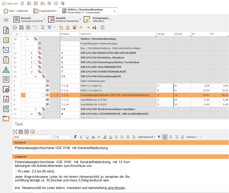 Da die umfangreichen Sanierungsprojekte sehr unterschiedlich sind, haben die Elektroplaner darauf verzichtet, ein Stamm-Leistungsverzeichnis anzulegen, sondern befüllen die Titel individuell. Auch verändern sich bei den Sanierungsmaßnahmen die zu erbringenden Leistungen während des weiteren Ablaufs, da in einem frühen Stadium noch nicht alle erforderlichen Tätigkeiten bekannt sind. So wird das Leistungsverzeichnis ergänzt, angepasst und die einzelnen Phasen werden zu Dokumentationszwecken revisionssicher gespeichert.