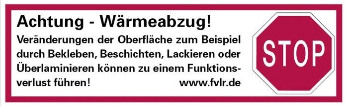 Lichtkuppeln und Lichtbänder können im Brandschutzkonzept eines Gebäudes als Wärmeabzüge berücksichtigt werden, ihre transparenten Oberflächen dürfen dann nicht verändert werden. Der Fachverband Tageslicht und Rauchschutz (FVLR) hat deshalb einen einheitlichen Aufkleber entwickelt, der vorsorglich auf allen als Wärmeabzug vorgesehenen Lichtkuppeln und Lichtbändern als Warnhinweis angebracht werden kann. Wärmeabzüge geben im Brandfall ab einer bestimmten Wärmeeinwirkung selbstständig Öffnungen frei, welche die Brandhitze nach außen leiten und damit das weitere Aufheizen tragender oder trennender Bauteile verhindern. So bestehen die transparenten Flächen von Lichtkuppeln und Lichtbändern meist aus thermoplastischen Kunststoffen, deren Schmelztemperatur unter 300 °C liegt. Das nachträgliche Verändern der Oberfläche des Materials – beispielsweise durch Bekleben, Beschichten, Lackieren oder Überlaminieren – kann die Materialeigenschaften bzw. die Schmelztemperatur verändern und so zu einem Funktionsverlust führen. Zudem würden die allgemeinen bauaufsichtlichen Zulassungen oder sonstigen Klassifizierungen der Dachoberlichter, die durch eine vorherige Materialprüfung erlangt wurden, ihre Gültigkeit verlieren. Der 10,2 × 4,3 cm große Aufkleber „Achtung – Wärmeabzug!“ warnt Gebäudebetreiber und Handwerker davor, als Wärmeabzug ausgestattete Dachoberlichter zu verändern und deren Schutzfunktion im Brandfall zu reduzieren.