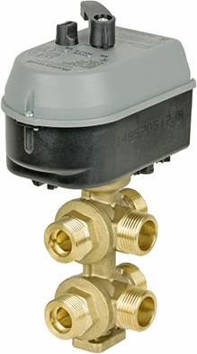 Das VBG6 Ventil von Honeywell ist ein 6-Wege-Kugelhahn, der bei 4-Leiter-Systemen mit nur einem Wärmeübertrager den Durchfluss zwischen Heizen und Kühlen steuert und so eine einfache und sichere Umschaltung pro Abnehmer ermöglicht. Diese Anwendung ergibt sich beim generellen Umschalten von Sommer- auf Winterbetrieb und auch, wenn in der Übergangszeit oder in Serverräumen über den Tag zwischen Heizen und Kühlen gewechselt werden muss. Durch das Design ist ein Querstrom unterschiedlich temperierter Medien mechanisch ausgeschlossen. Das VBG6 Ventil gibt es in den Nenngrößen DN 15 und DN 20 mit Außengewinde. Ein Zweipunkt-Stellantrieb stellt das Ventil zwischen Heizen und Kühlen um. Darüber hinaus ist auch ein modulierender 0…10-V-Antrieb verfügbar, mit dem eine Mittelstellung angefahren werden kann, um das Ventil abzusperren und sowohl Heiz- als auch Kühlkreislauf zu schließen. Bei längeren Ruhephasen, wenn Hotels beispielsweise in der Nebensaison ganze Gebäudetrakte nicht nutzen, kann das zur Energieoptimierung beitragen. K V -Ringe zur Anpassung des Ventildurchmessers und somit zur Volumenstrombegrenzung sind im Lieferumfang enthalten. Für die genaue Durchflussregelung kann zusätzlich ein druckunabhängiges Regelventil Kombi FCU an den 6-Wege-Kugelhahn angeschlossen werden.