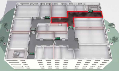 Wenn Gefahr durch Rauch oder Feuer droht, hat das rasche und sichere Verlassen des Gebäude(bereich)s oberste Priorität. Eine dynamische Fluchtweglenkung kann dabei vermeiden, dass Personen durch die Notausgang-Beschilderung in den akuten Gefahrenbereich geführt werden.