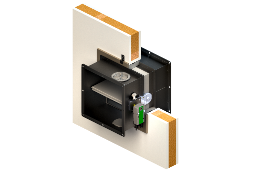 Die Brandschutzklappe BKE von Schako ist auch für den Einsatz in Holzkonstruktionen – Holzständer-, Holztafel- und Holzfachwerkwänden, Brettsperrholzwänden und -decken (CLT-Konstruktionen) – geeignet.