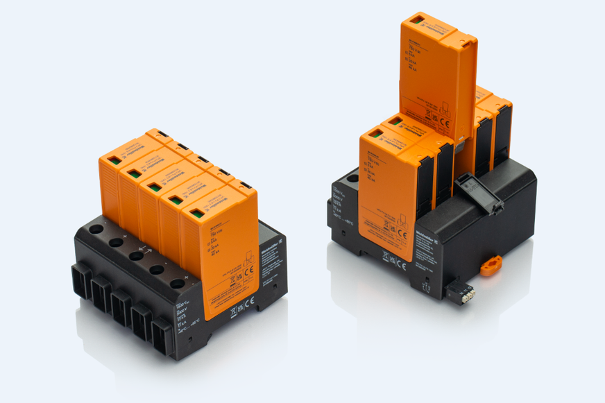 Das 5-polige Überspannungsschutzmodul Varitector PU PV I+II 5 1500 von Weidmüller ist für eine Systemspannung von 1500 V ausgelegt und direkt für den Anschluss von zwei MPP-Trackern vorgesehen. Mit fünf TE ist er besonders schmal und als Kombination aus Typ I und Typ II flexibel in allen Bereichen der Photovoltaik-Anlage einsetzbar.