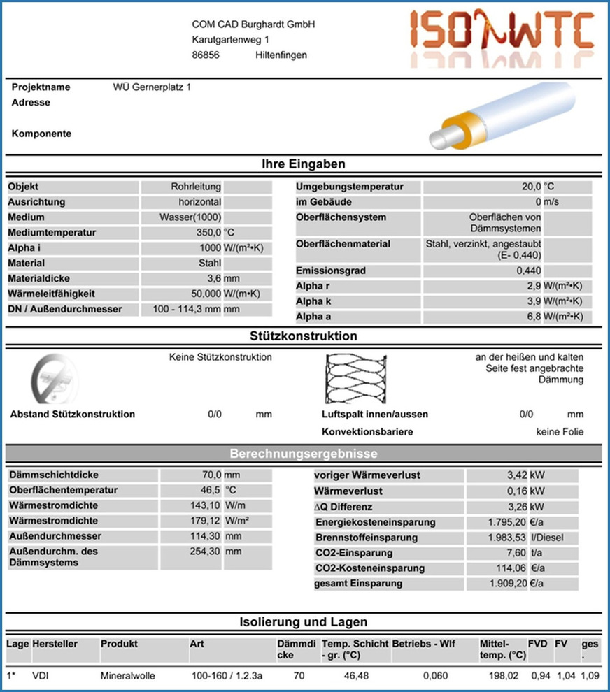Zusätzlich berechnet Isowtc die Einsparung von Energie durch das Dämmen gegenüber dem Energieverbrauch ungedämmter Anlagen oder Komponenten. Ist bereits eine Dämmung vorhanden, ermöglicht Isowtc eine Gegenüberstellung zwischen alter Bestandsdämmung und neuer Dämmung. Neben der Energieeinsparung werden auch Reduktionen des CO2-Ausstosses und Amortisationszeiten berechnet. www.isowtc.com/de