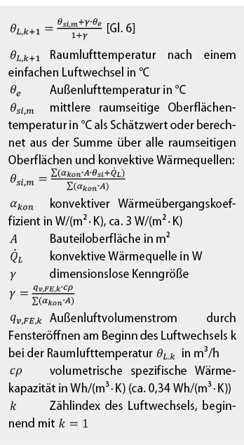 Unter der Annahme, dass die raumseitigen Oberflächentemperaturen aufgrund der Wärmeträgheit der Bauteile und die konvektiven Wärmequellen während einer relativ kurzen Stoßlüftungszeit konstant bleiben, kann man mit einem Ansatz, welcher Lüftungsheizlast und konvektive Wärmeabgabe gleichsetzt,