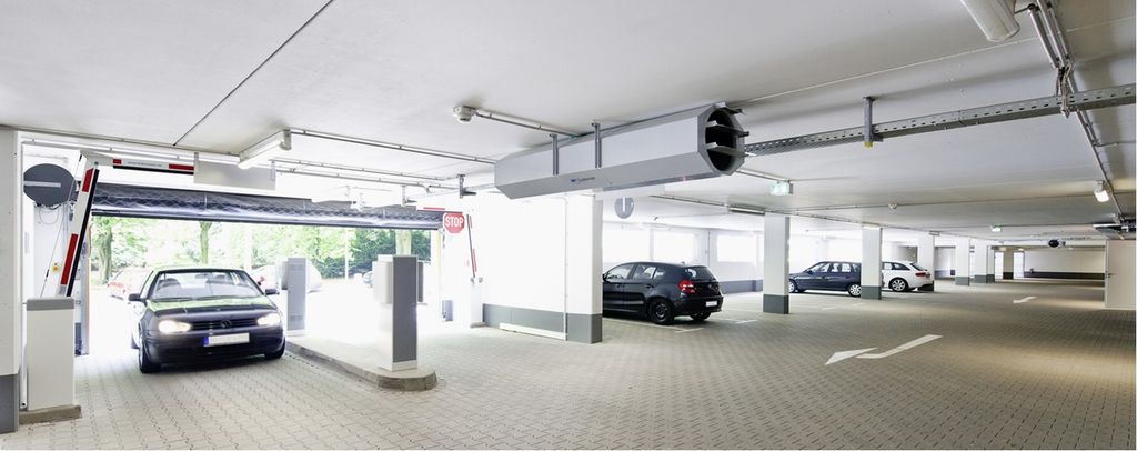 Anlagenbauer: Durch die Einrichtung virtueller Rauchabschnitte mit Jet-Ventilatoren ergeben sich für ein Garagenprojekt aus dem Wegfall von Brandschutzwänden und Sprinkleranlage verringerte Bau- und Investitions- sowie dauerhaft niedrigere Betriebskosten.