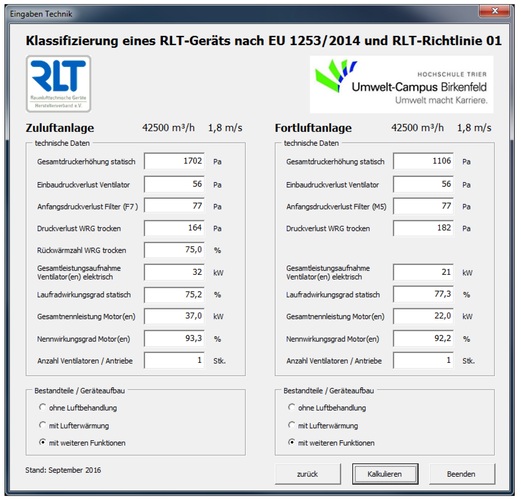 Das Programm ermöglicht eine schnelle Prüfung der Klassifizierung eines RLT-Gerätes nach Ökodesign-Richtlinie EU 1253/2014 und zeigt die Kategorie des Energieeffizienzlabels nach dem Labeling-System des Herstellerverbands an. Das Softwaretool richtet sich an Planer, Gerätehersteller und an die Behörden der Marktüberwachung. ■