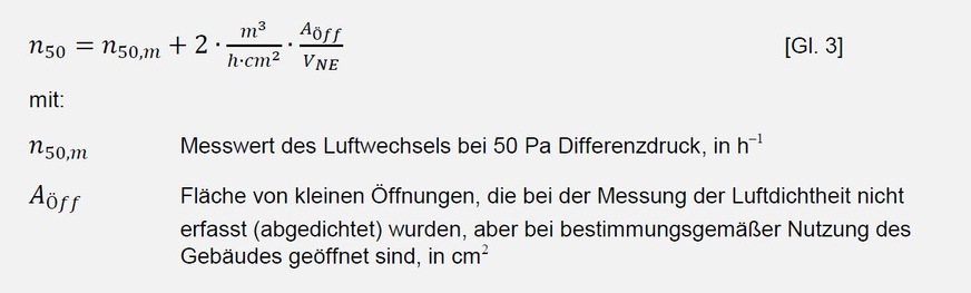 Wird die Gebäudedichtheit mit einer Messung bestimmt, kann eine rechnerische Korrektur für kleine Öffnungen erfolgen, die bei der Messung abgedichtet, bei bestimmungsgemäßer Nutzung aber offen sind: