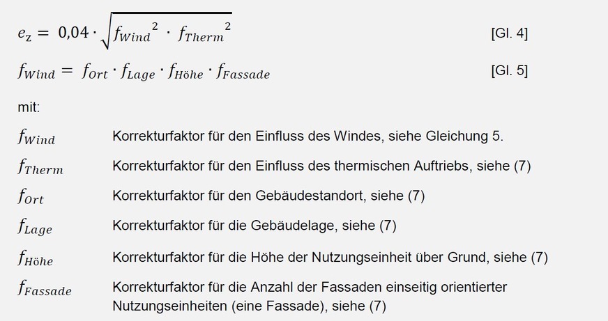 Für die Dimensionierung der ALD wird die Infiltration in Abhängigkeit von Gebäudeparametern, wie Standort und Gebäudelage, sowie von Parametern der Nutzungseinheit, wie Höhe über Grund, Fassadenanzahl und Anzahl der Geschosse bestimmt: