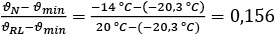 Beispiel: Eine Wohnung in einem gerade errichteten Studentenwohnheim hat ein Zimmer mit 19,05 m 2 und ein fensterloses Bad mit 3,57 m 2 . Die lichte Raumhöhe beträgt 2,60 m. Daraus ergibt sich das Raumvolumen des Zimmers zu 49,53 m 3 . Die Lüftungsanlage nach DIN 18 017-3 wird dauerhaft im Zimmer mit 40 m 3 /h Nachströmung betrieben. Für das Beispiel im Abb. 3 ist die Heizung bei 20 °C Raumlufttemperatur und einem Luftwechsel im Zimmer von 40 m 3 /h : 49,53 m 3 = 0,81 h -1