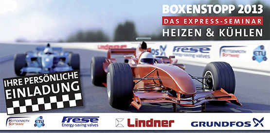 Energieeffizientes Heizen und Kühlen nimmt eine immer wichtigere Rolle ein. Experten von Hottgenroth/ETU, Frese, Lindner und Grundfos bieten beim „Boxenstopp 2013 – Das Express-Seminar Heizen & Kühlen“ dreimal einen kompakten Überblick über die optimale Abstimmung zwischen Energieerzeugung, Verteilsystem und Regelung. Die Gäste erwartet ein spannender Tag mit Initialvorträgen, Workshops und Diskussionsrunden. Eingeladen sind insbesondere TGA-Planer, selbst planende Ausführende, Facility Manager, Energieberater, Mitarbeiter von Bauämtern und Industrieunternehmen im Bereich Gebäudetechnik. Termine (jeweils von 10.00 bis 17.00 Uhr, Gebühr: 49,00 Euro (netto) pro Teilnehmer): 14. Mai im ADAC-Fahrsicherheitszentrum Weilerswist (NRW), am 22. August im ADAC-Fahrsicherheitszentrum Linthe (Brandenburg) und am 5. Dezember im ADAC-Fahrsicherheitszentrum Hockenheim (Hessen). Weitere Infos und Anmeldung unter: https://www.hottgenroth.de/landingpages/tga-boxenstopp/boxenstopp.html