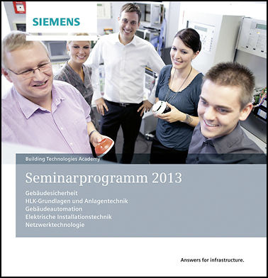 Das Weiterbildungszentrum für Gebäudetechnik von Siemens, die Building Technologies (BT) Academy, bietet in ihrem Seminarprogramm für 2013 Schulungen für Praktiker zu den Themenfeldern Gebäudeautomation, Sicherheits- und Brandschutztechnik sowie Netzwerktechnik und Heizungs-, Lüftungs- und Klimatechnik an. 90 Seminare an 230 Terminen stehen zur Auswahl. Für das Schulungszentrum in Frankfurt arbeiten 110 zumeist zertifizierte Referenten aus der Praxis. http://www.siemens.de/bt-academy