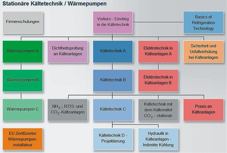 Das Test- und Weiterbildungszentrum Wärmepumpen und Kältetechnik (TWK), Karlsruhe, hat sein Kursprogramm 2011 veröffentlicht. Angeboten werden zahlreiche Lehrgänge die mit Veranstaltungsdauern zwischen einem Tag und einer Woche rund um die Kältetechnik fortbilden: Kältetechnik A, B, C und D (Projektierung), Sicherheit und Unfallverhütung bei Kälteanlagen, Praxis an Kälteanlagen, Vorkurs – Einstieg in die Kältetechnik, NH 3 -, R723- und CO 2 -Kälteanlagen, EU Zertifizierter Wärmepumpeninstallateur, Kältetechnik mit dem Kältemittel CO 2 stationär, Dichtheitsprüfung an Kälteanlagen sowie Wärmepumpen A, B und C. Der TWK-Veranstaltungskalender steht auf: http://www.twk-karlsruhe.de