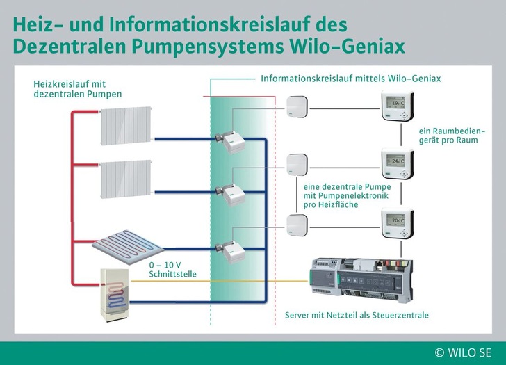 TGA/SHK-Planer und Fachhandwerker bekommen mit den ein- bis zweitägigen Geniax-Schulungen eine optimale Vorbereitung auf das einzigartige dezentrale Pumpensystem von Wilo. Die Teilnehmer der bundesweit stattfindenden Schulungen erfahren alles Wissenswerte über Funktionsweise, technische Zusammenhänge und bauliche Anforderungen. Das Gelernte kann anschließend direkt an der Wilo-Geniax-Box, einem Funktionsmodell des dezentralen Pumpensystems, praktisch ausprobiert werden. Für den Einstieg geeignet ist die Grundlagenschulung, in der neben einer ausführlichen Funktionsbeschreibung auch praxisgerechte Tipps für Planung, Installation und Bedienung vermittelt werden. Für die Vertiefung empfiehlt sich die zweitägige Intensivschulung. Weitere Infos, Termine und Anmeldung auf: https://wilo.com/de/de/ http://www.geniax.de