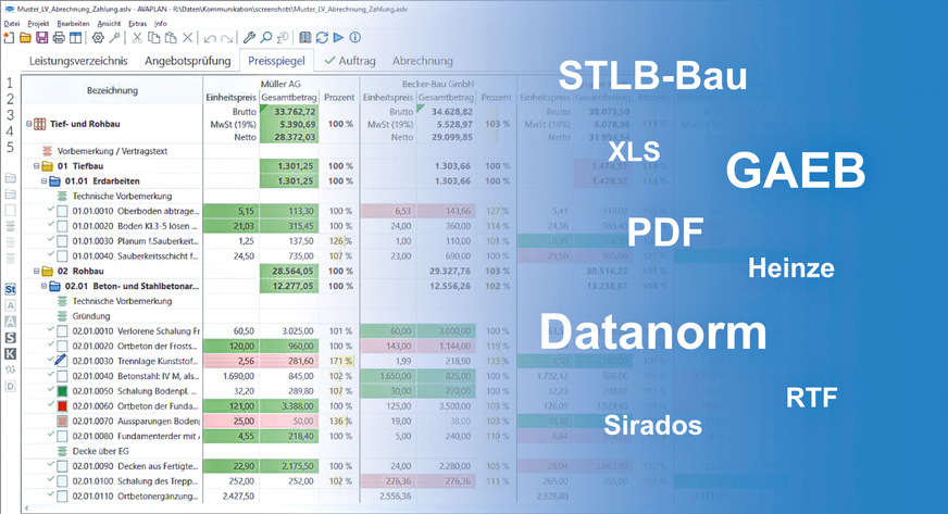 Es lassen sich jetzt auch GAEB-Dateien im Format *.X89 importieren und weiterverarbeiten. Zudem wurden vorhandene Schnittstellen, z. B. GAEB, Datanorm und Excel, an die neuesten Standards angepasst.