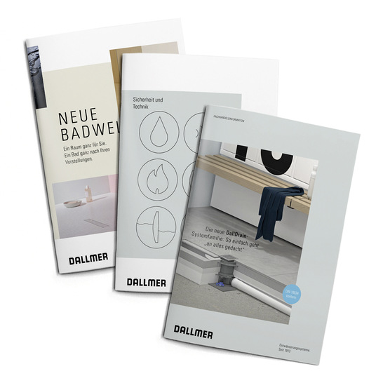 Dallmer hat drei neue Broschüren aufgelegt. „Sicherheit und Technik“ ist der Katalog für Installateure und Planer – ein 136-Seiten-Kompendium mit Informationen zur Entwässerungstechnik, Abdichtung von Innenräumen, Brand- und Schallschutz sowie den dazugehörigen Normen.