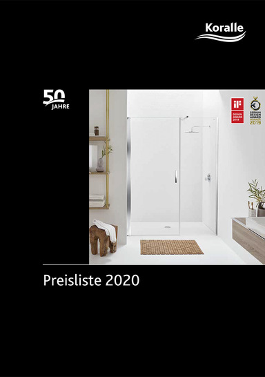 Die Brutto-Preisliste 2020 von Koralle bietet auf 438 Seiten einen Überblick über die Dusch- und Wannenwelten des Design-Markenherstellers. Das Planungs- und Verkaufsinstrument enthält neben ausführlichen Hinweisen zu Qualität und Garantie, Reinigung, Pflege, Kundendienst und Ersatzteilbestellung, Aufmaß und Montage auch vorbereitete Maßblätter sowie Formulare zur Aufmaß- oder Ersatzteilanforderung. Zu den einzelnen Serien sind genaue Modellübersichten, Produktmerkmale und technische Details übersichtlich aufgeführt. Die Brutto-Preisliste steht im Service-Bereich als Blätterkatalog und Download-Version zur Verfügung: www.koralle.de