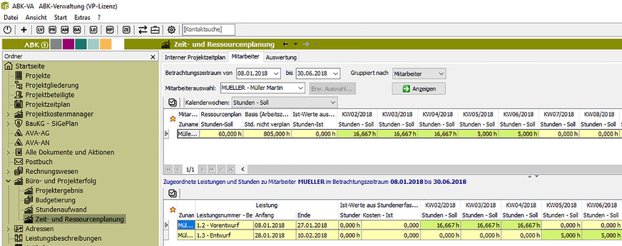 Wichtig ist, dass die Software modular in eine Büromanagement-Software integriert ist und bei der Erstellung und Aktualisierung von Ressourcen- und Kapazitätsplänen auf alle Mitarbeiter-, Projekt- oder Honorardaten zugreifen kann.