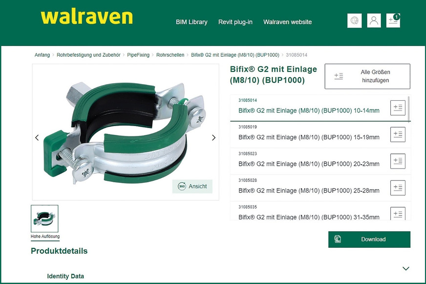 Walraven hat seine BIM-Plattform mit mehreren Verbesserungen optimiert. Alle BIM-Modelle liegen jetzt in mehreren Dateiformaten vor (Revit, DWG 2D, DWG 3D, DXF, IFC, SAT, FBX). Die Verfügbarkeit der Produkte ist auf die jeweilige Region abgestimmt. Zudem sind verschiedene Sprachen wählbar (unter anderem Deutsch, Englisch, Französisch, Tschechisch, Schwedisch, Italienisch, Polnisch, Ungarisch, Kroatisch, Niederländisch, Ukrainisch, Dänisch, Spanisch).